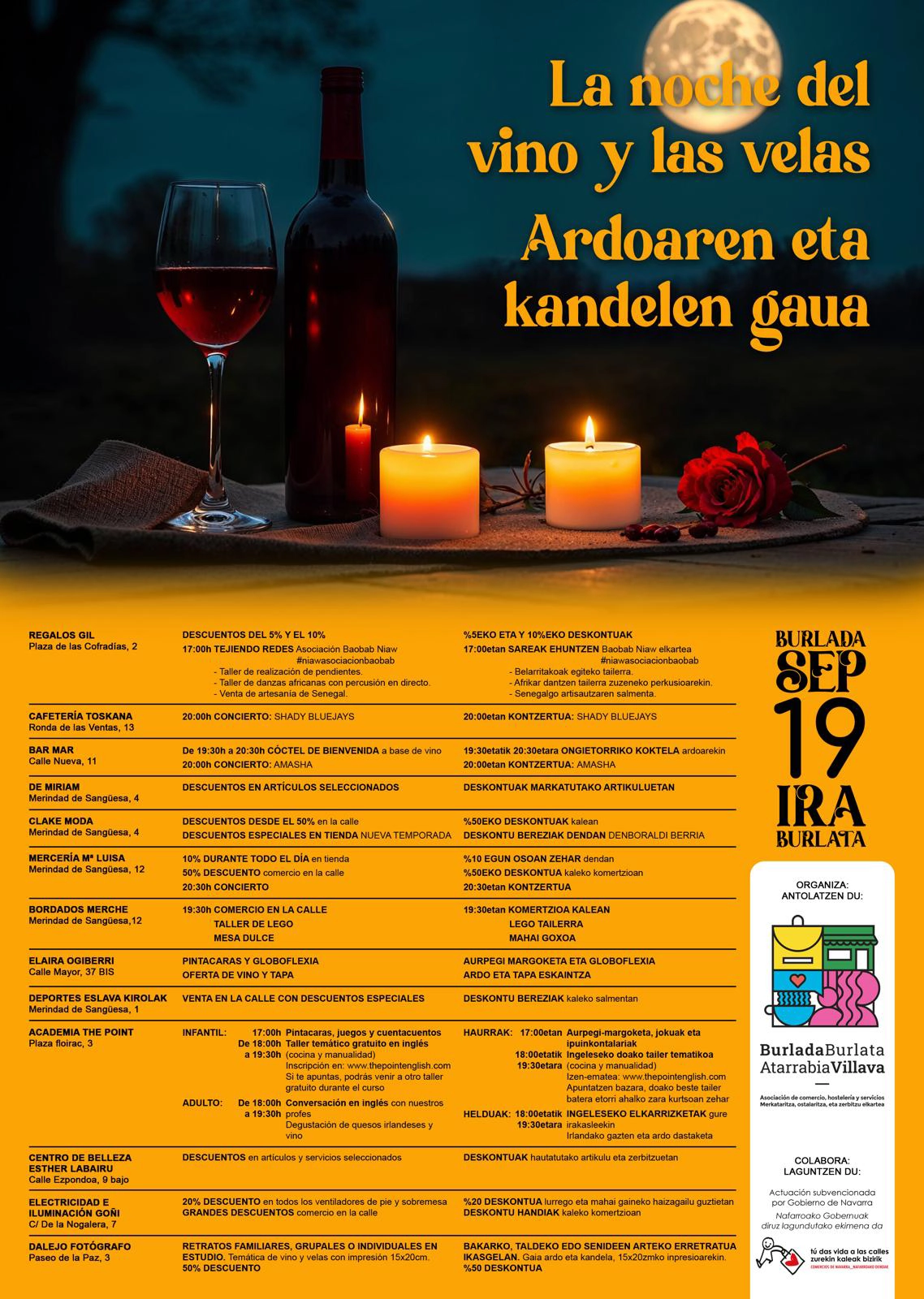 La Campana -Asociación de Comerciantes, Hostelería y Servicios / Merkataritza, Ostalaritza eta Zerbitzu Elkartea- tiene todo preparado para celebrar la sexta edición de “La Noche del Vino y las Velas” el próximo viernes 7 de septiembre en Burlada.