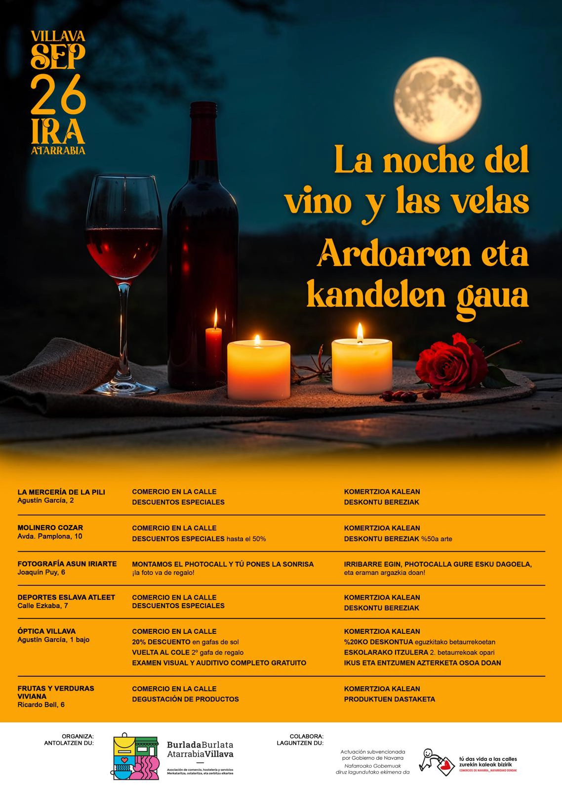 La campaña “La Noche del Vino y las Velas” cuenta con la colaboración del Gobierno de Navarra y el Ayuntamiento de Burlada dentro de sus líneas de apoyo al comercio local.